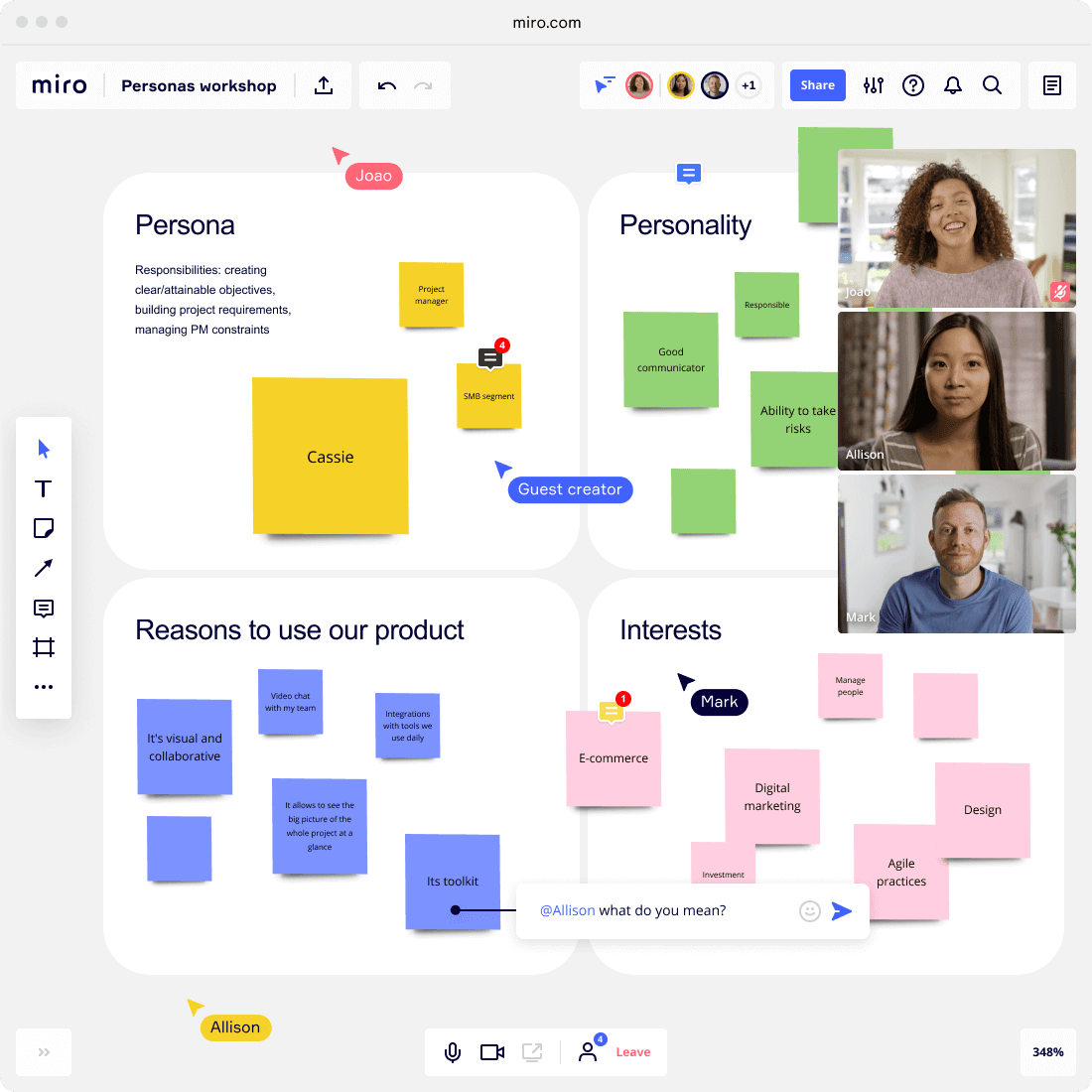 Unleash creative ideas and build on them with the help of sticky notes, images, mind maps, videos, drawing capabilities — the list goes on.